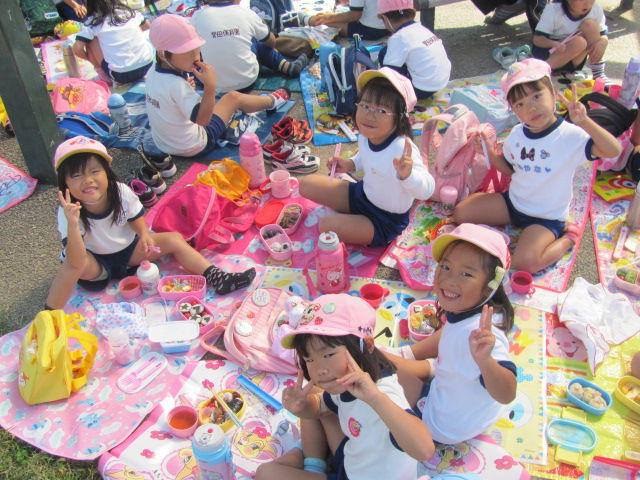 全園児でゲームで楽しんだり、さくらさんと給食やおやつを食べたりします。